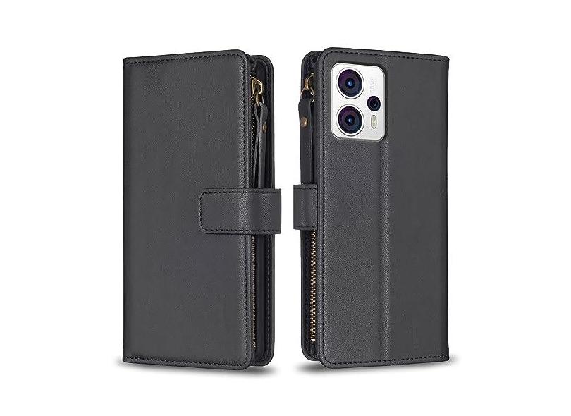 Capa com alça de pulso para Motorola Moto G13, 9 compartimentos para cartão, 1 carteira de couro com zíper, suporte flip fecho magnético, capa de telefone compatível com Moto G13 4G 6,5 polegadas