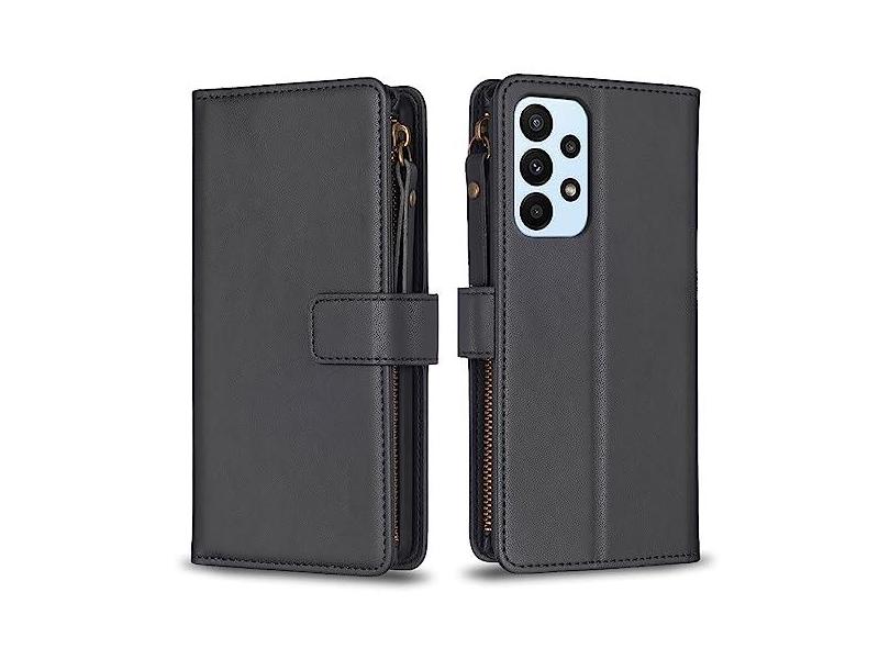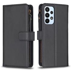 Capa com alça de pulso para Samsung Galaxy A23 4G, 9 compartimentos para cartão, 1 carteira de couro com zíper, fecho magnético com suporte, capa para celular compatível com Samsung A23 4G 6,5
