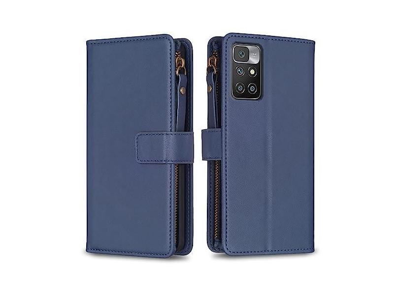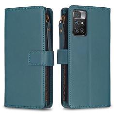 Capa com alça de pulso para Xiaomi Redmi 10, 9 compartimentos para cartão, 1 carteira de couro com zíper, função de suporte, fecho magnético, capa para celular compatível com Redmi 10 4G 6,5 polegadas