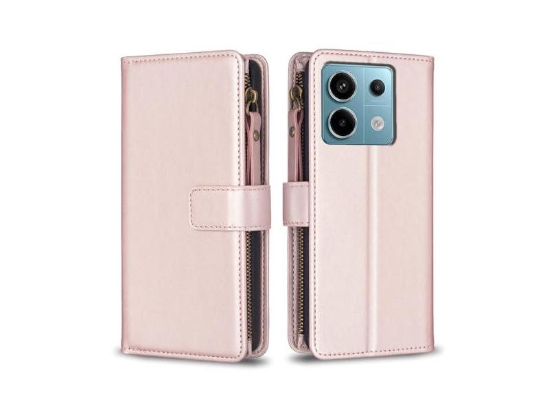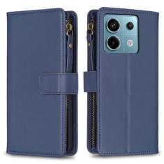 Capa com alça de pulso para Xiaomi Redmi Note 13 Pro 4G, 9 compartimentos para cartão, 1 carteira de couro com zíper, função de suporte, fecho magnético, capa para celular compatível com Redmi Note 13