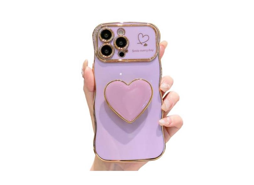 Capa com suporte de coração compatível com iPhone 11 Pro Max, linda moldura ondulada, formato encaracolado com suporte de coração de amor, capa de proteção de câmera levantada luxuosa à prova de