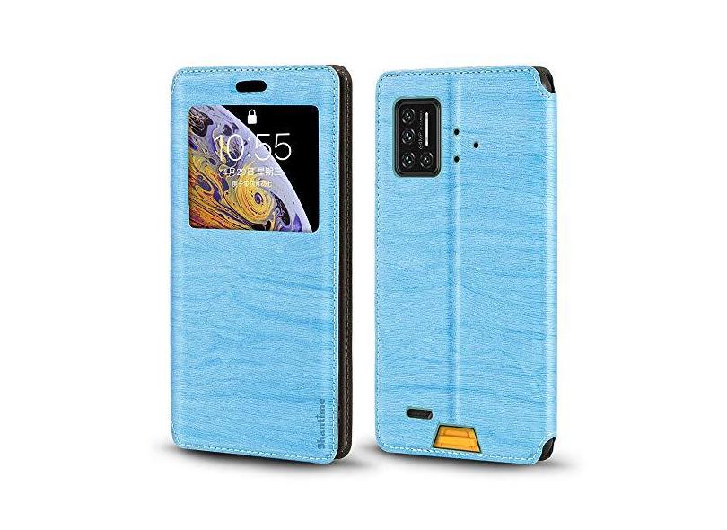 Capa de bisão Umidigi, capa de couro de grão de madeira com porta-cartão e janela, capa flip magnética para bisão Umidigi