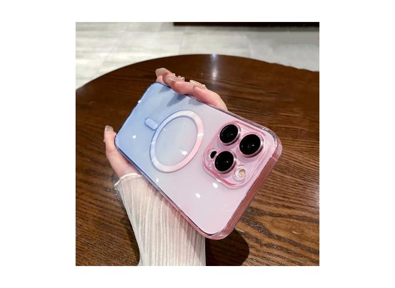 Capa de carga sem fio com padrão gradiente de luxo para iPhone 11 12 13 14 15 Pro Max Plus Capa magnética transparente macia, azul, para iPhone 15Pro Max