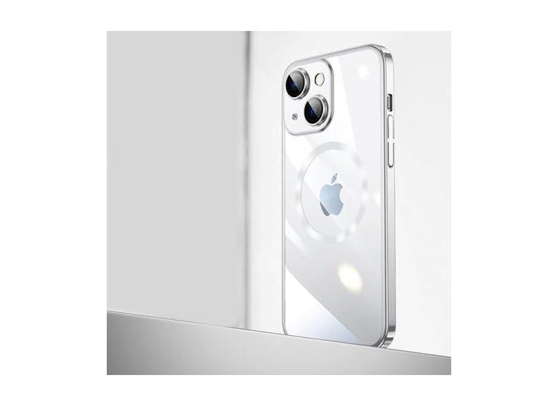 Capa de carga sem fio magnética transparente com moldura galvanizada de luxo para iPhone 14 Plus 13 12 11 Pro Max Capa macia, SL, para iPhone 14Pro Max