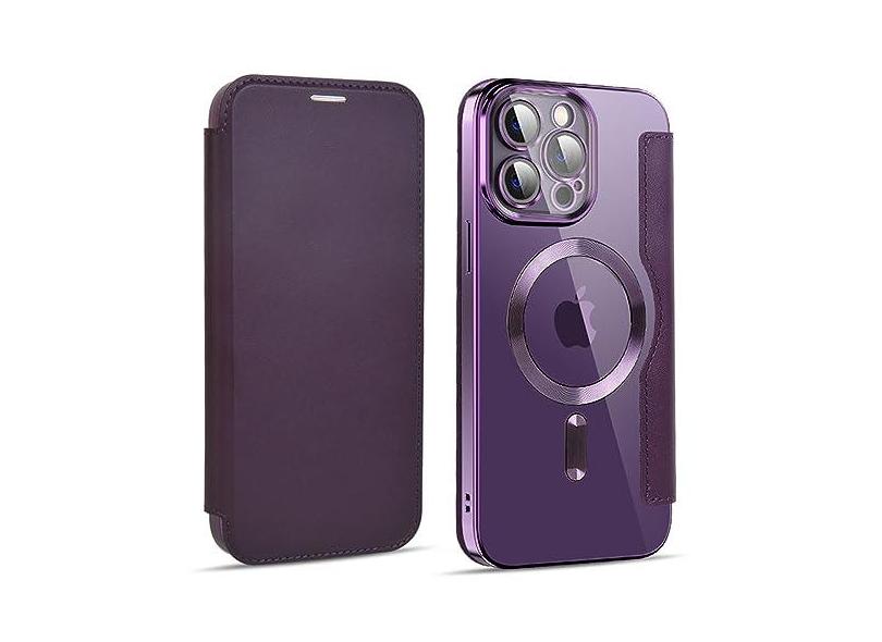 Capa de carga sem fio para iPhone 14 13 12 11 Pro Max 15 Plus com flip magnético de couro com compartimento para cartão capa traseira rígida para PC, T2, para iPhone 14Pro Max