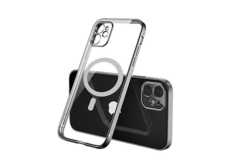Capa de carregamento magnético sem fio de luxo para iPhone 13 12 11 Pro Max Mini XR Xs X 7 8 Plus Capa de silicone macio, preto, para iPhone 8 Plus