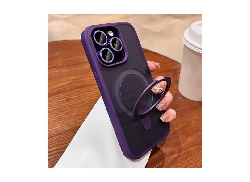 Capa de carregamento sem fio luxuosa para iPhone 11 12 13 14 15 Pro Max Plus Suporte de anel magnético Capa de proteção para câmera, roxa, para iPhone 11Pro Max