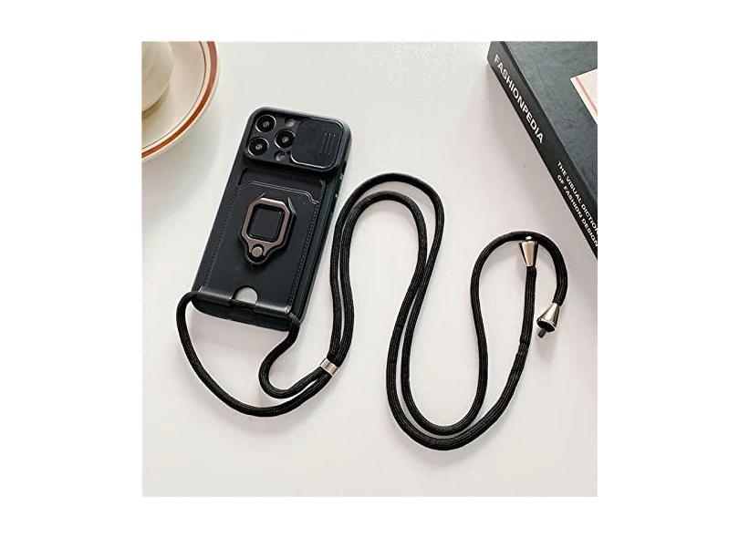 Capa de carteira de cartão de suporte de anel de silicone de cordão transversal para iphone 13 11 12 14 pro max xs x xr 6 8 7 plus se capa de câmera deslizante, preta, para iphone 12 promax