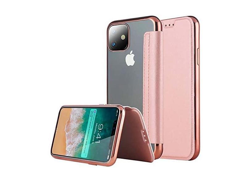 Capa de carteira de couro com capa de livro fino de luxo para iphone 11 pro xs max x 8 7 6 6 s s plus 5 5 s se xr capa de cartão macia traseira transparente, ouro rosa, para iphone 7 plus