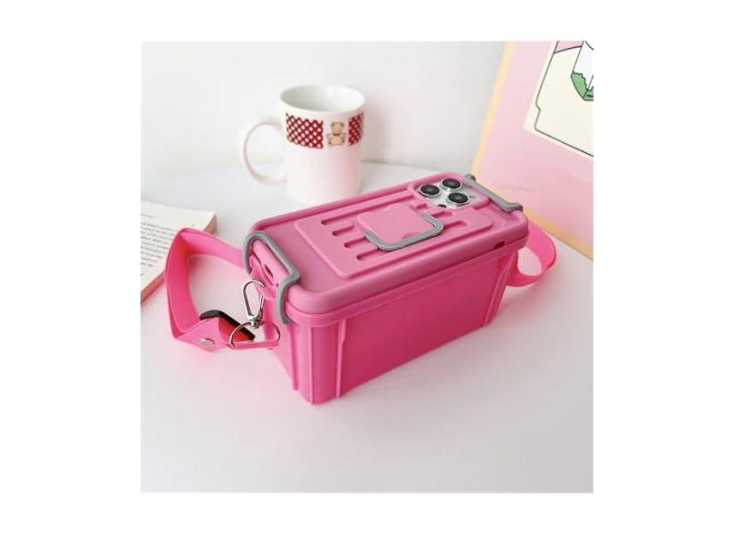 Capa de celular 2 em 1 Candy Color Skin Feel com cordão para iPhone 11 12 13 14 15 Pro Max Plus, capa de caixa de armazenamento, rosa, para iPhone 15