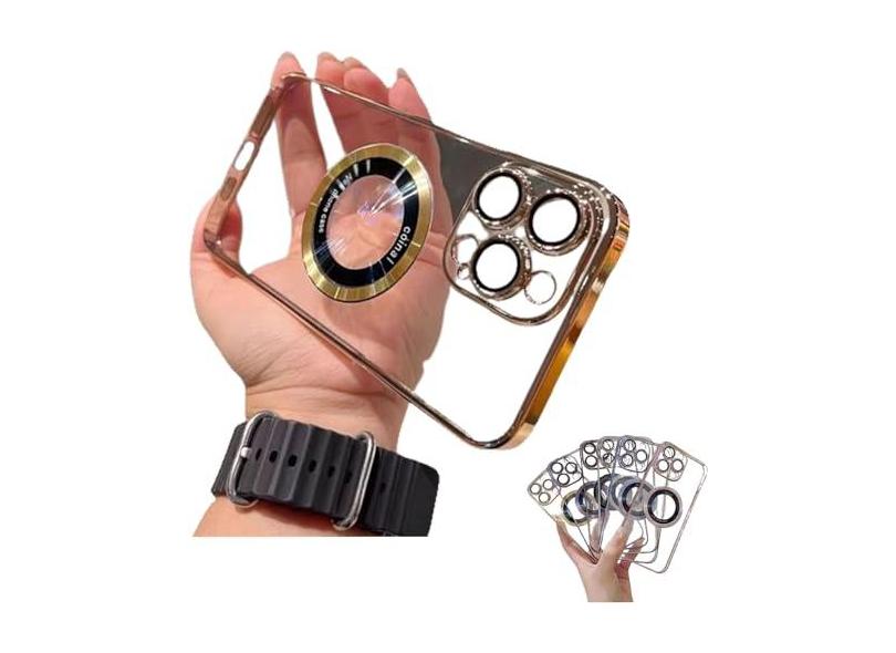 Capa de celular anti-queda galvanizada, capa transparente oca magnética de luxo para 15 14 13 12 11 Pro Max Plus capa de borda fashion galvanizada /1016 (Color : Golden, Size : For iPhone 13 Pro)