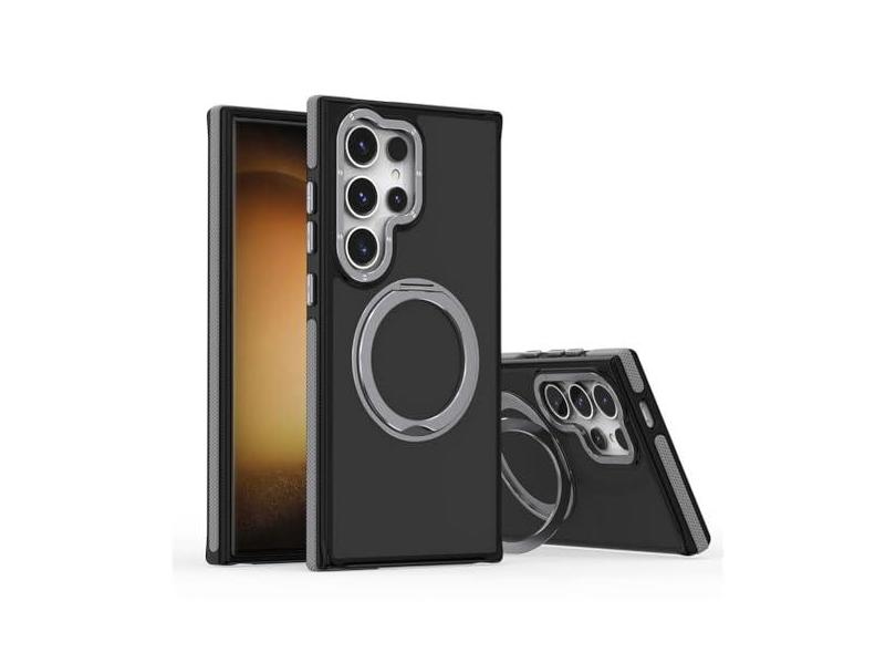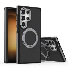 Capa de celular com suporte magnético giratório e armadura para Samsung S24 Ultra S23 Plus, suporte dobrável de metal, capa protetora à prova de choque, cinza, para Galaxy S23