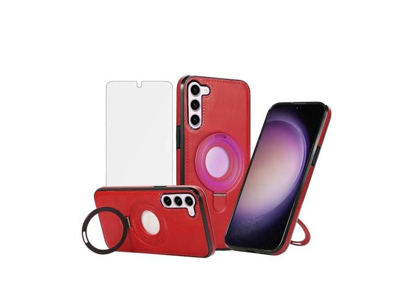 Capa de celular para Samsung Galaxy S23 Plus S23+ 5G com protetor de tela de vidro temperado Magsafe Slim Magnetic Stand Ring Holder Capa para celular S23plus 23S + S 23 23+ SM-S916U 16.8 cm Mulheres