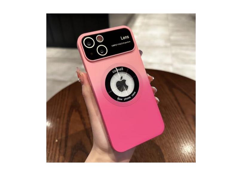 Capa de cor gradiente de janela grande para iPhone 14 Pro Max 13 12 11 Plus Capa protetora magnética de câmera de carregamento sem fio, rosa vermelha, para iPhone 13 Pro