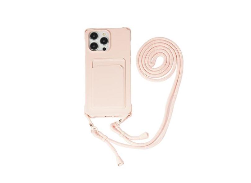 Capa de cordão para iPhone 15 14 12 13 11 Pro Max Mini XS X XR 8 7 Plus Suporte para slot de cartão à prova de choque Capa de alça de colar crossbody, rosa, para iPhone 11 ProMax