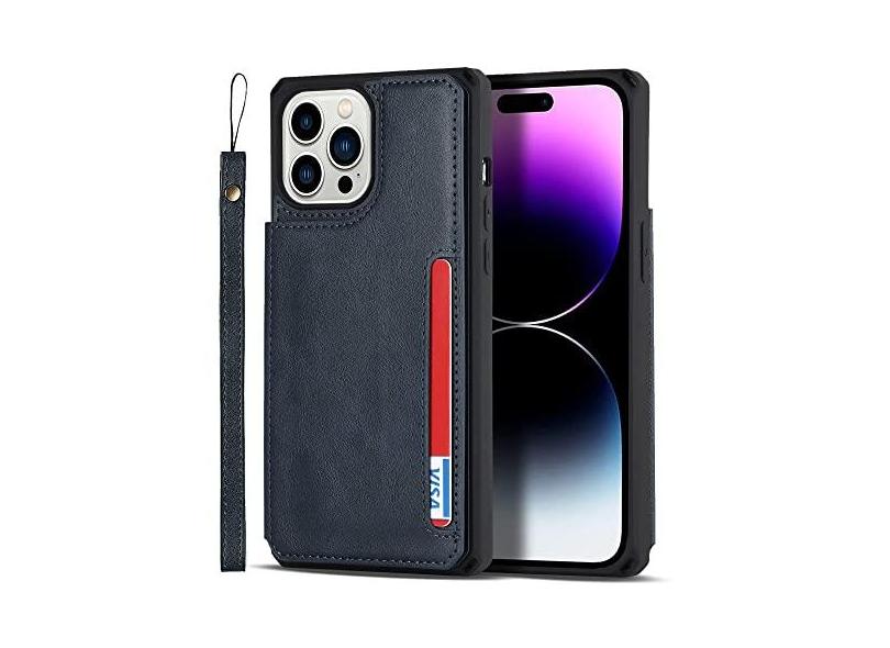 Capa de couro flip para iPhone 12 13 Mini 14 11 Pro Max Carteira Capa para telefone com compartimento para cartão de crédito Alça de suporte, azul, para iPhone 11