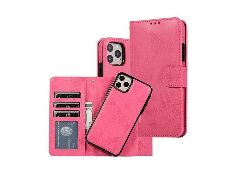 Capa de couro luxuosa removível para iPhone SE 2020 12 13 Mini 11 Pro XR XS Max 6 6s 7 8 Plus 5 5s Flip Carteira Cartão de telefone Capa de bolsa, vermelha, para iphone 11 Pro