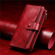 Capa de couro magnética destacável para iPhone X XS XR 11 12 13 14 15 Pro Max Capa carteira com zíper, vermelha, para iPhone 13