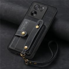 Capa de couro para cartões de pulseira, bolsa de bolso com alça para xiaomi note 13 pro 12 plus 12t 13t 11 lite x5 x4 pro x3, preta, para poco x4 pro 5g