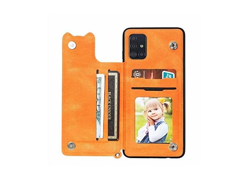 Capa de couro para Samsung Galaxy S20 FE S21 Ultra S10 Note20 Plus A21S A31 A41 A51 A71 A52 A52 A72 A12 A30 A50 A70 Capa do porta-cartão, laranja XLL MTL, para Galaxy A72