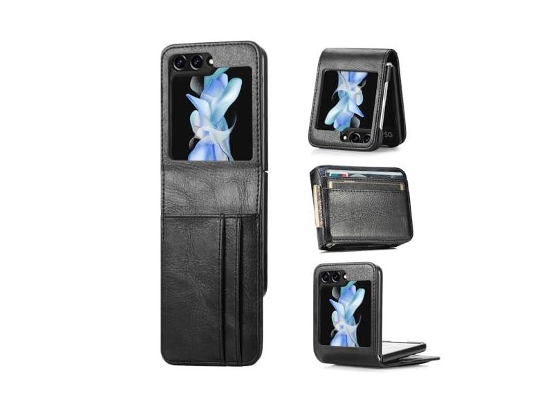 Capa de couro pu com suporte para cartão, capa protetora para samsung galaxy z flip 6 5 4 3 flip5 flip4 flip6 5g, preta, para galaxy z flip 3