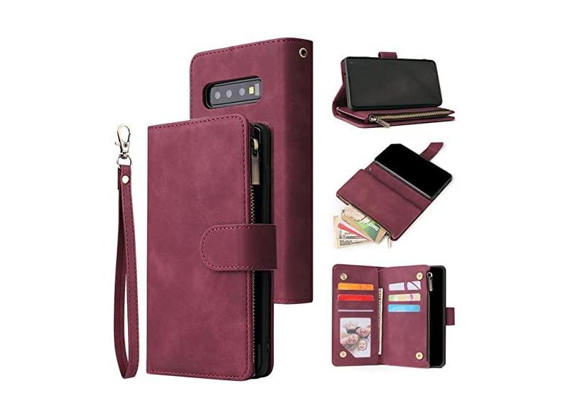 Capa de couro retrô flip para Samsung Galaxy S22 Ultra S21 FE S20 FE S10 S10e S9 S8 Plus Note 20 10 9 A51 A52 Cartões Carteira Capa, Vinho Tinto, Para Samsung A52