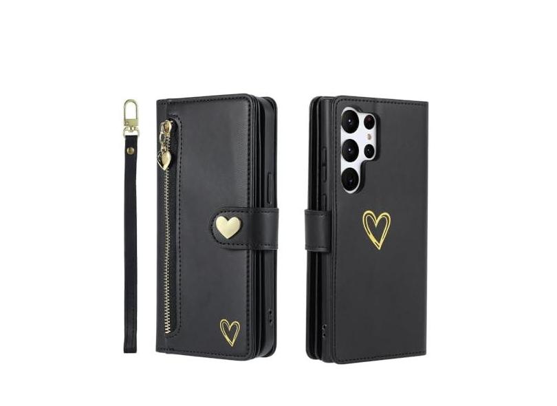 Capa de couro tipo carteira com zíper para Samsung Galaxy S23 S24 Ultra S22 Plus S21 FE A04 A14 A24 A34 A54 A05S A15 Capa de bolsa, preta, para Galaxy A04 4G