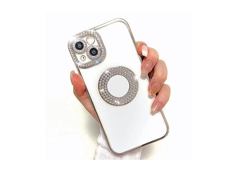 Capa de diamante de luxo compatível com iPhone 13, capa com design de strass brilhante brilhante para meninas e mulheres, borda de revestimento macio transparente com lente de câmera proteção à prova