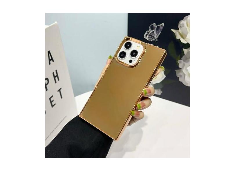 Capa de espelho de maquiagem luxuosa com revestimento quadrado brilhante para iPhone 15 14 12 13 11 Pro Max Plus Slim Soft TPU capa de pára-choque à prova de choque, dourada, para iPhone 13