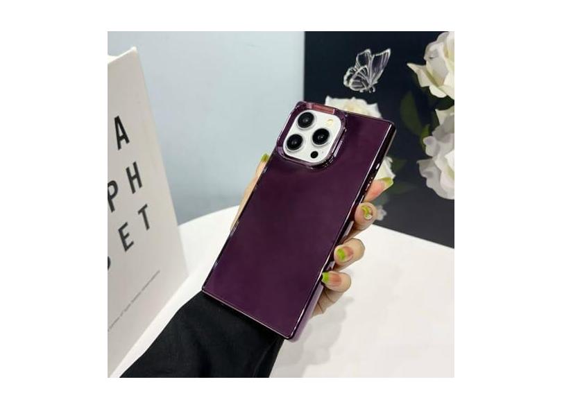 Capa de espelho de maquiagem luxuosa com revestimento quadrado brilhante para iPhone 15 14 12 13 11 Pro Max Plus Slim Soft TPU capa de pára-choque à prova de choque, roxo escuro, para iPhone 15 P