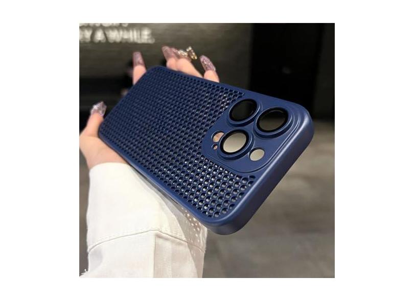 Capa de malha respirável com dissipação de calor para iphone 15 14 11 12 13 pro max plus capa dura de proteção de lente, azul marinho, para iphone 14 pro