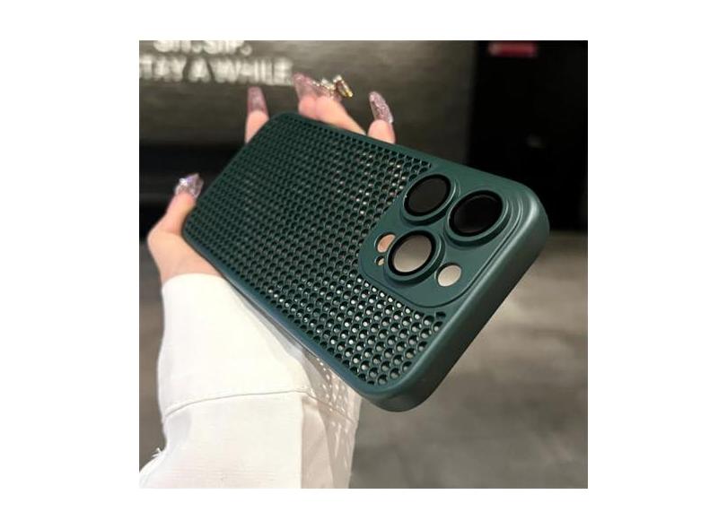 Capa de malha respirável com dissipação de calor para iPhone 15 14 11 12 13 Pro Max Plus Capa dura de proteção de lente, verde escuro, para iPhone 15Pro Max