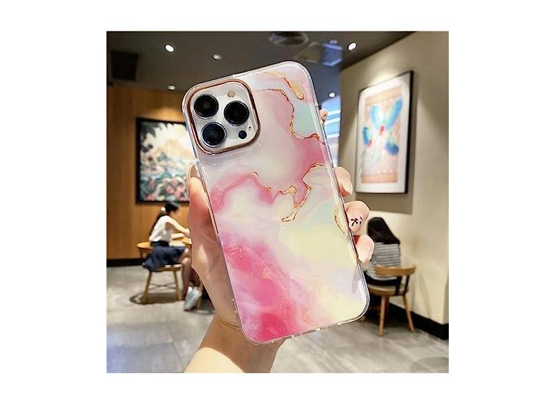 Capa de padrão de mármore de pintura de luxo para iPhone 11 12 Pro 13 Pro Max Soft Transparent Bumper Capa de telefone acrílico à prova de choque, capa de mármore rosa, para iPhone 12 Pro
