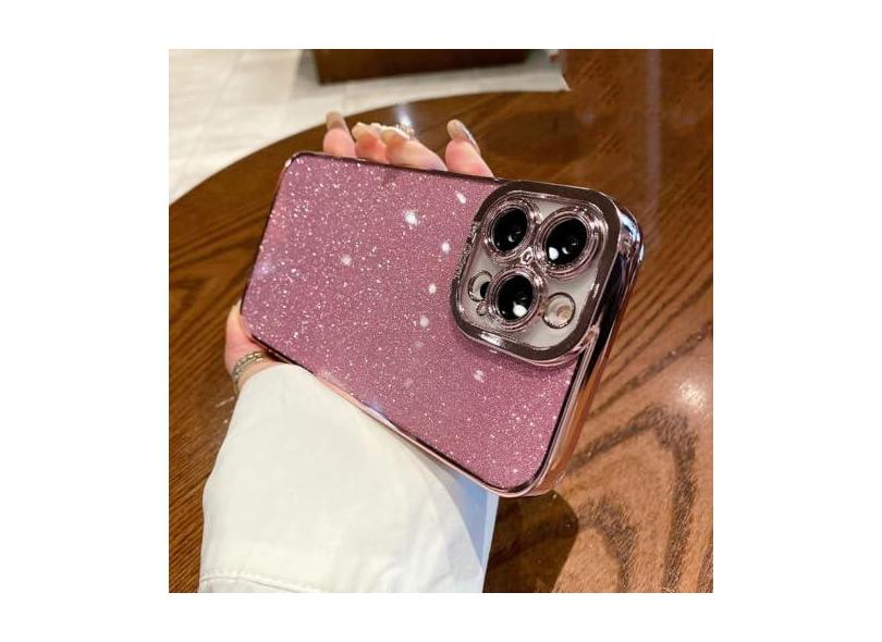Capa de silicone com brilho quadrado luxuoso para iPhone 14 13 12 Mini 11 Pro Max X XR XS 7 8 Plus SE2022 Capa de lantejoulas macias, rosa, para iPhone 14