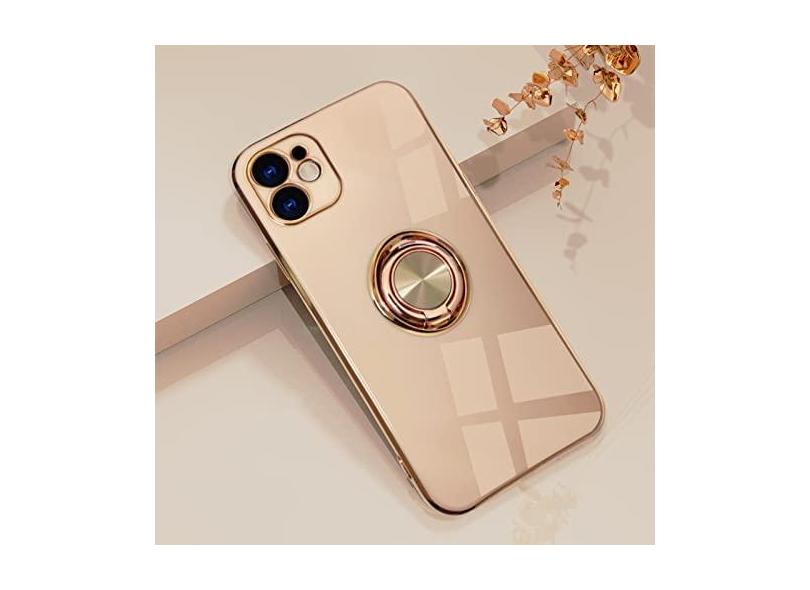 Capa de silicone de chapeamento de luxo para iphone 13 12 11 pro xs max mini se x xr 7 8 plus suporte de anel de metal simples suporte capa de telefone macia, rosa, para iphone se 2020