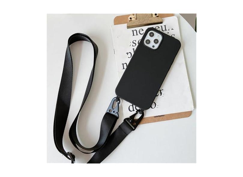Capa de silicone fosco com alça de colar crossbody para iPhone 15 14 Pro Max 11 12 13 Mini XR X XS 7 8 Plus SE Capa à prova de choque, preta, para iPhone 13 mini