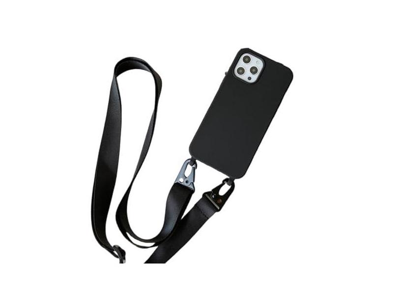 Capa de silicone fosco com alça de colar crossbody para iPhone 15 14 Pro Max 11 12 13 Mini XR X XS 7 8 Plus SE Capa à prova de choque, preta, para iPhone 14 ProMax