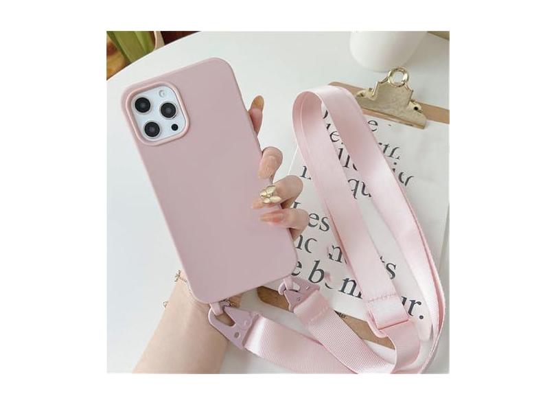 Capa de silicone fosco com alça de colar crossbody para iPhone 15 14 Pro Max 11 12 13 Mini XR X XS 7 8 Plus SE Capa à prova de choque, rosa areia, para iPhone 11 Pro