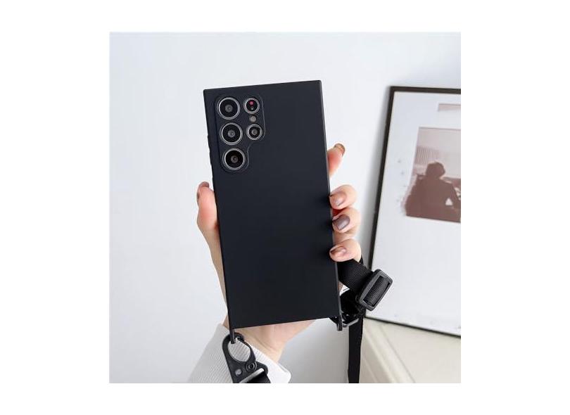 Capa de silicone líquido com alça de colar crossbody para Samsung S23 S22 Ultra S21 Plus S20FE A52 A72 A22 A32 Candy Color Cover, preta, para S22 Plus