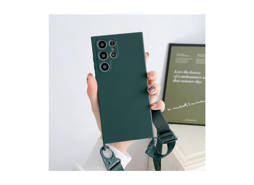 Capa de silicone líquido com alça de colar crossbody para Samsung S23 S22 Ultra S21 Plus S20FE A52 A72 A22 A32 Candy Color Cover, verde escuro, para S22 Ultra