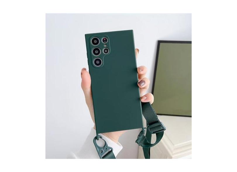 Capa de silicone líquido com alça de colar crossbody para Samsung S23 S22 Ultra S21 Plus S20FE A52 A72 A22 A32 Candy Color Cover, verde escuro, para S22