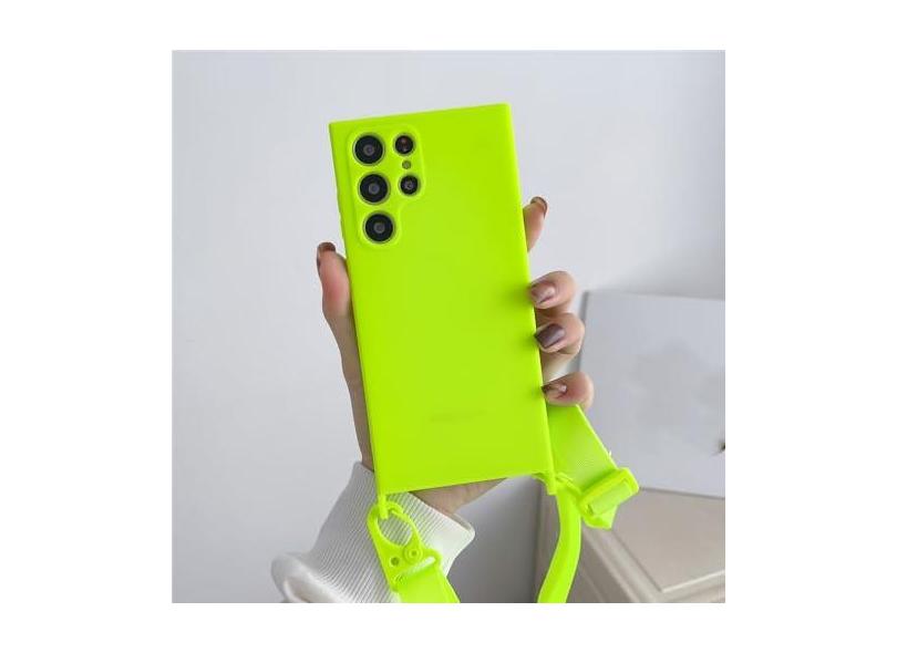 Capa de silicone líquido com alça de colar crossbody para Samsung S23 S22 Ultra S21 Plus S20FE A52 A72 A22 A32 Candy Color Cover, verde fluorescente, para S21 Ultra