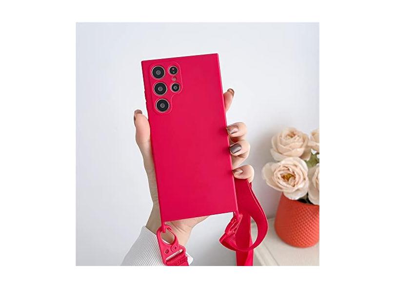 Capa de silicone líquido com alça de colar crossbody para Samsung S23 S22 Ultra S21 Plus S20FE A52 A72 A22 A32 Candy Color Cover, vermelho, para S21