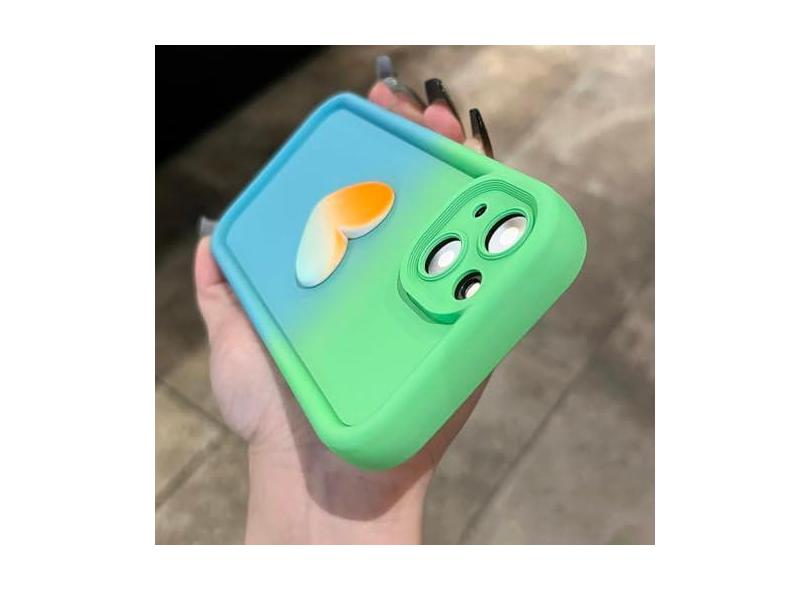 Capa de silicone líquido macio gradiente fofo 3D amor coração para iPhone 11 12 13 14 Pro Max XR X XS 8 7 Plus SE 3 capa de cor doce, azul verde, para iPhone 13 ProMax