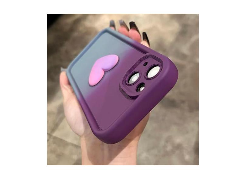 Capa de silicone líquido macio gradiente fofo 3D amor coração para iPhone 11 12 13 14 Pro Max XR X XS 8 7 Plus SE 3 capa de cor doce, cinza roxo, para iPhone X