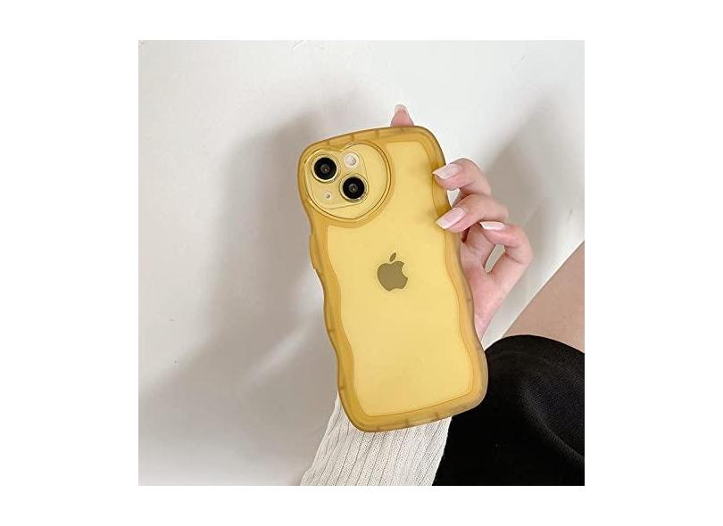 Capa de silicone macia ondulada transparente para iPhone 14 13 12 11 Pro Max X XR XS 8 7 Plus Love Heart Lens Protection Candy Cover, amarelo, para iPhone12 Pro