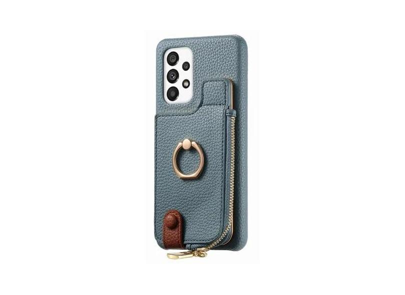 Capa de suporte de anel de carteira de cartões com zíper para Samsung Galaxy S24 Ultra S23 Plus S22 A14 A24 A34 A15 A55 A05S Capa de bolsa vertical, azul, para Samsung S23FE