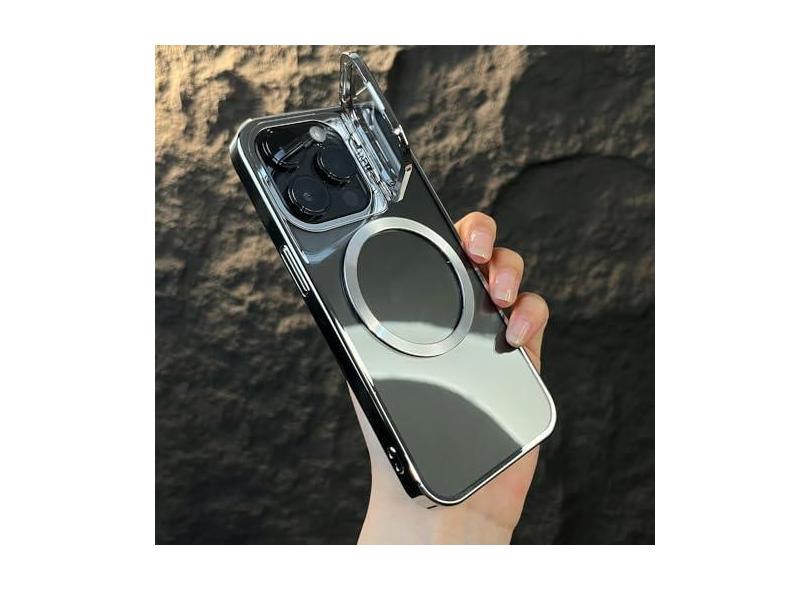 Capa de suporte de câmera dobrável invisível para iPhone 13 14 Pro Max 13Pro 14Pro Max Capa transparente de carregamento magnético, prata, para iPhone 13 Pro