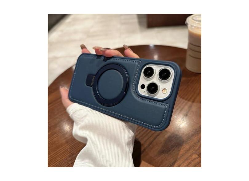 Capa de suporte invisível para iphone 15 pro max 14 promax capa de couro para iphone 15 pro 14 capa de suporte de carga sem fio, azul, para iphone14promax
