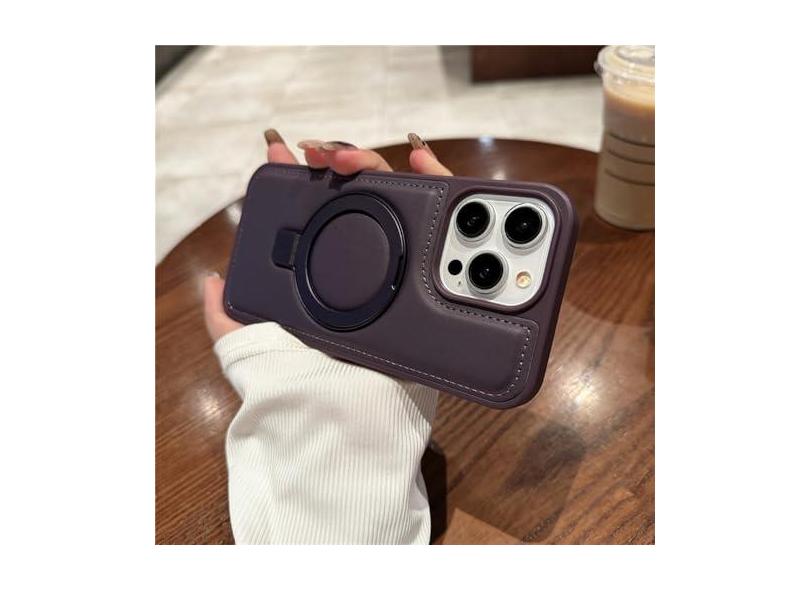 Capa de suporte invisível para iphone 15 pro max 14 promax capa de couro para iphone 15 pro 14 capa de suporte de carga sem fio, roxo, para iphone14plus